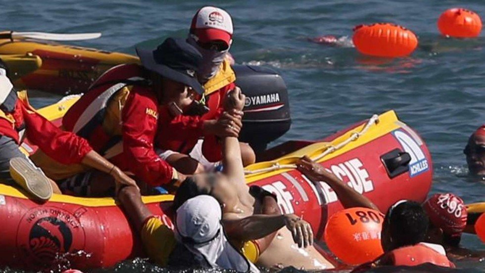Στη φωτογραφία ο άτυχος άνδρας που ανασύρθηκε νεκρός στη διάρκεια του αγώνα 1.500μ. που διεξήχθη την περασμένη Κυριακή στο λιμάνι του Χονγκ-Κονγκ