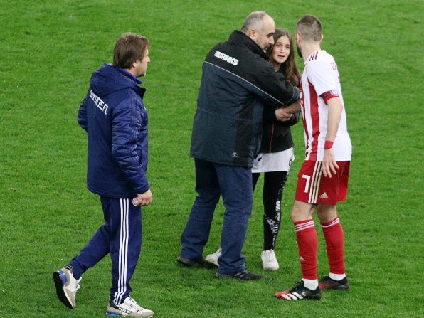 Μία μικρή φίλη των «ερυθρολεύκων» ξέφυγε από την προσοχή των ανθρώπων ασφαλείας και μετά από... παρέμβαση του Σεμέδο πέτυχε τον... στόχο της