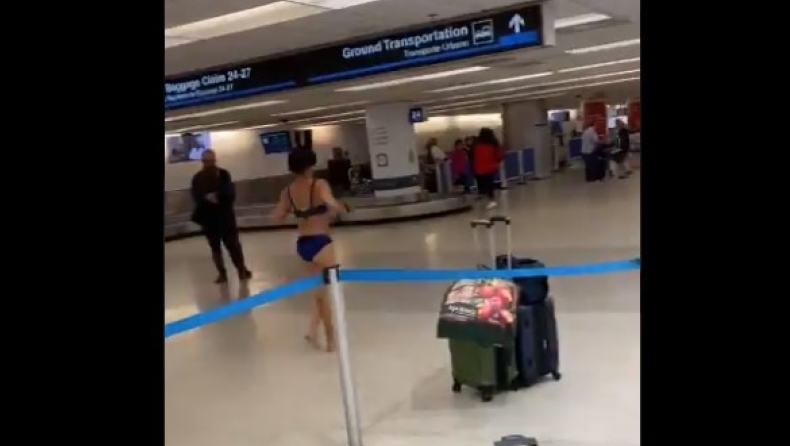 Έκπληκτοι έμειναν όσοι βρίσκονταν στο αεροδρόμιο του Μαϊάμι την Δευτέρα, όταν είδαν ξαφνικά μία κοπέλα να περπατάει και ταυτόχρονα να κάνει strip tease, βγάζοντας ένα ένα τα ρούχα της.
