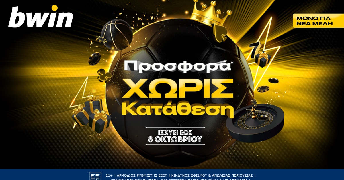 bwin - Προσφορά χωρίς κατάθεση με σούπερ έπαθλα*, για νέα μέλη μέχρι τις 8/10!