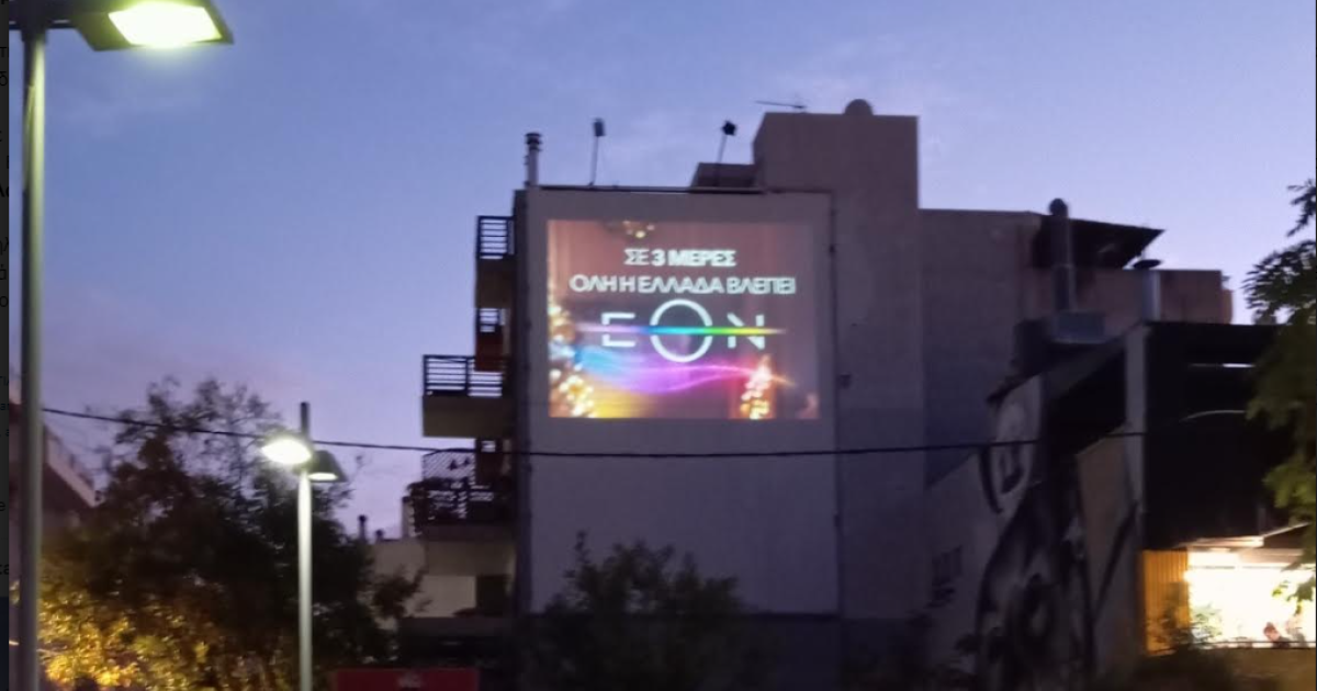 Πόλο έλξης αποτελεί ένας τοίχος στο Γκάζι όπου ξεκίνησε να προβάλλεται το μήνυμα «Σε 3 ημέρες όλη η Ελλάδα βλέπει ΕΟΝ», δημιουργώντας μεγάλη προσμονή και ενδιαφέρον για το τι…ετοιμάζει η Nova μέσα από την πλατφόρμα της EON προς ΟΛΟΥΣ εν όψει των Χριστουγέννων. Σήμερα το ίδιο μήνυμα μας λέει ότι μένουν 2 μόνο μέρες!