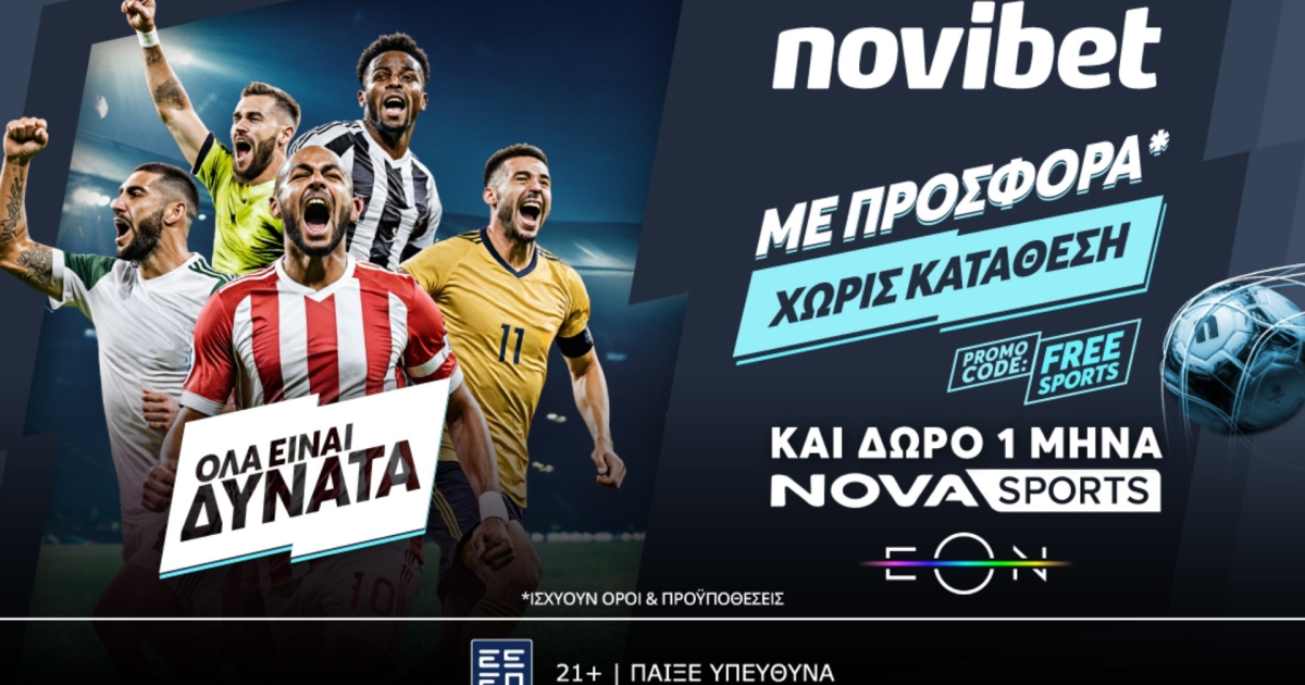 Στη Novibet απολαμβάνεις ποδοσφαιρική δράση δωρεάν* χάρη στη νέα σούπερ προσφορά* με δώρο 1 μήνα NOVASPORTS!