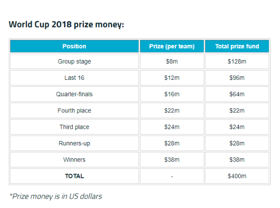 Όλα τα ποσά θα δοθούν στους νικητές μετά την ολοκλήρωση του World Cup.