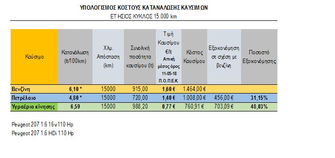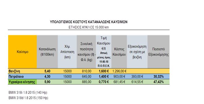 Στους πίνακες που ακολουθούν, μπορείς να δεις πόσο τελικά ξοδεύεις με βενζίνη, πετρέλαιο ή υγραέριο κίνησης για κάθε 15.000 χιλιόμετρα που διανύεις.