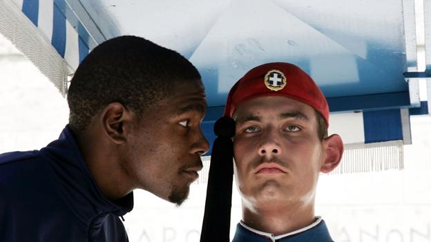Κι όμως! Miracles, do happen! Από τη μία ο Πρωταθλητής Κόσμου του 2014, κάτοχος του Βραβείου MVP και 4 φορές 1ος σκόρερ του ΝΒΑ, κάποιος κύριος Κέβιν Ντουράντ κι από την άλλη, ο Πρωταθλητής του Δημοσιογραφικού Πρωταθλήματος του 2010, και 9ος σκόρερ το 2009 (ω ναι!), ο γνωστός Βασίλης Παπανδρέου, που για να.. τιμήσει τον ΚD, έβαλε τα παπούτσια του!