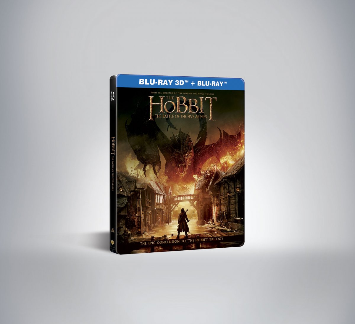 Από τις 17 Απριλίου, η ταινία «Χόμπιτ: Η Μάχη των Πέντε Στρατών» κυκλοφορεί σε DVD και Blu-ray, καθώς και Blu-ray 3D η οποία παρουσιάζεται και σε συσκευασία steelbook, στο δίκτυο λιανικής πώλησης από την Τanweer. Oι εκδόσεις αυτές περιλαμβάνουν επίσης special features που δημιούργησε ο ίδιος ο σκηνοθέτης για τους φανατικούς του είδους.