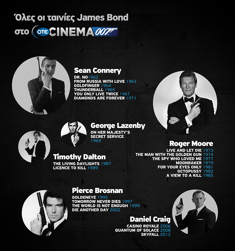 Από σήμερα (16/10) και έως τις 15 Νοεμβρίου, ο απόλυτος μυστικός πράκτορας, Τζέιμς Μπόντ, έχει το δικό του κανάλι στον OTE TV, τo OTE CINEMA 007 .