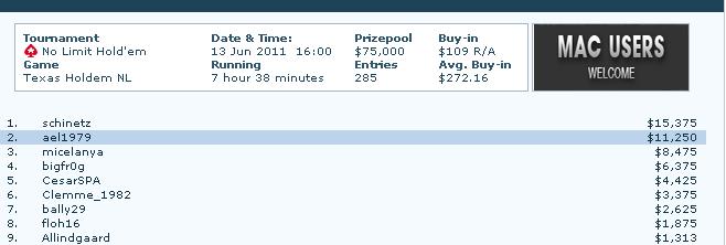 Εκεί κατάφερε να φτάσει μέχρι το heads up του τουρνουά και να τερματίσει τελικά στην δεύτερη θέση για $11.250.
