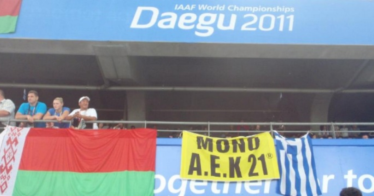 Στην πόλη Νταεγού της Νότιας Κορέας όπως είναι γνωστό διεξάγεται τούτες τις μέρες το Παγκόσμιο Πρωτάθλημα Στίβου και εννοείται πως αν κάτι έκανε τη διαφορά (εκτός των σούπερ επιδόσεων και των τελικών κάθε αγωνίσματος) ήταν το γεγονός ότι υπάρχουν ΑΕΚτσήδες (και) στην Νότια Κορέα...