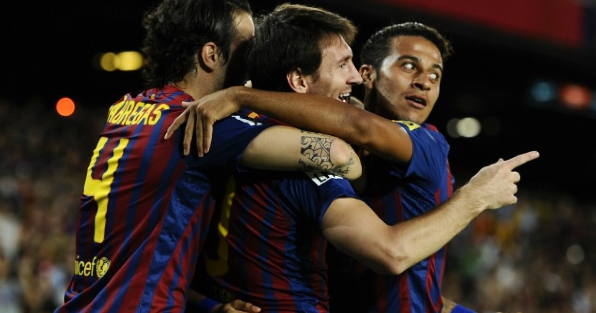 Από νωρίς ξεκίνησε το πάρτι για τους πρωταθλητές Ισπανίας, αφού μόλις στο 5' ο Τσάβι έδωσε δεξιά στον Ντάνι Αλβες, που συμπλήρωσε 100 συμμετοχές με τη φανέλα των Μπλαουγκράνα, και ο Βραζιλιάνος με κεφαλιά-πάσα σέρβιρε στον Μέσι για το 1-0. Στο 13' ήρθε το 2-0 και ο Αργεντινός έγινε δημιουργός με ψηλοκρεμαστή πάσα στον Φάμπρεγας που νίκησε τον Αντρές Φερνάντεθ με ωραίο αριστερό σουτ στην κίνηση. Στο 30' ο Μέσι είχε δοκάρι με κεφαλιά από σέντρα του Αλβες και από εκεί και πέρα, ό,τι πήγαινε μέσα... έγραφε. Στο 34' από πάσα του Αμπιντάλ ο Βίγια έκανε το 3-0 και στο 40' βγήκε τετ α τετ με τον πορτιέρο της Οσασούνα, που απέκρουσε και στη συνέχεια της φάσης ο Ροβέρσιο πέτυχε αυτογκόλ για το 4-0. Το 5-0 έγινε ένα λεπτό μετά με τον Φάμπρεγας να κάνει ωραία ενέργεια και να δίνει έτοιμο γκολ στον Μέσι.