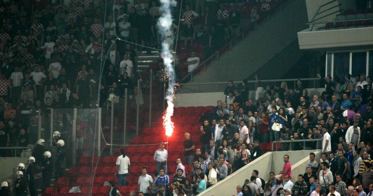 Το μοιραίο έγινε στην αρχή του αγώνα όταν από την ανταλλαγή φωτοβολίδων και εκρηκτικών το ένα έσκασε στα χέρια ενός Κροάτη που έχασε το δάκτυλο του! Ο άτυχος φίλαθλος βρίσκεται ήδη στο νοσοκομείο και του προσφέρονται οι απαραίτητες πρώτες βοήθειες.