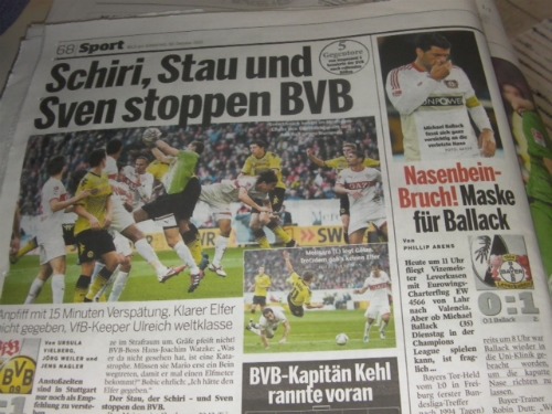 Η ΒΙLD τονίζει: «Η καθυστέρηση, ο διαιτητής και ο Ούλρεϊχ σταμάτησαν την Μπορούσια». Η μεγάλη γερμανική εφημερίδα ειρωνεύεται τους γηπεδούχους, αφού όπως σημειώνει, «τα τέσσερα από τα πέντε τελευταία εντός έδρας παιχνίδια της έχουν ξεκινήσει με δεκαπεντάλεπτη καθυστέρηση. Μάλλον οι ώρες έναρξης των αγώνων δεν αγγίζουν τη Στουτγκάρδη». Στο σχόλιό της για το παιχνίδι η BILD τονίζει πως η Ντόρτμουντ ήταν εμφανώς καλύτερη, αλλά λόγω του μη καταλογισμού ενός υπέρ της πέναλτι, αλλά και της εκπληκτικής εμφάνισης του γκολκίπερ της Στουτγκάρδης δεν έφυγε με τους τρεις βαθμούς, ύστερα από τέσσερις συνεχείς νίκες. Στην κορυφαία ενδεκάδα της εφημερίδας πάντως, δεν υπάρχει κανένας παίκτης της Μπορούσια.