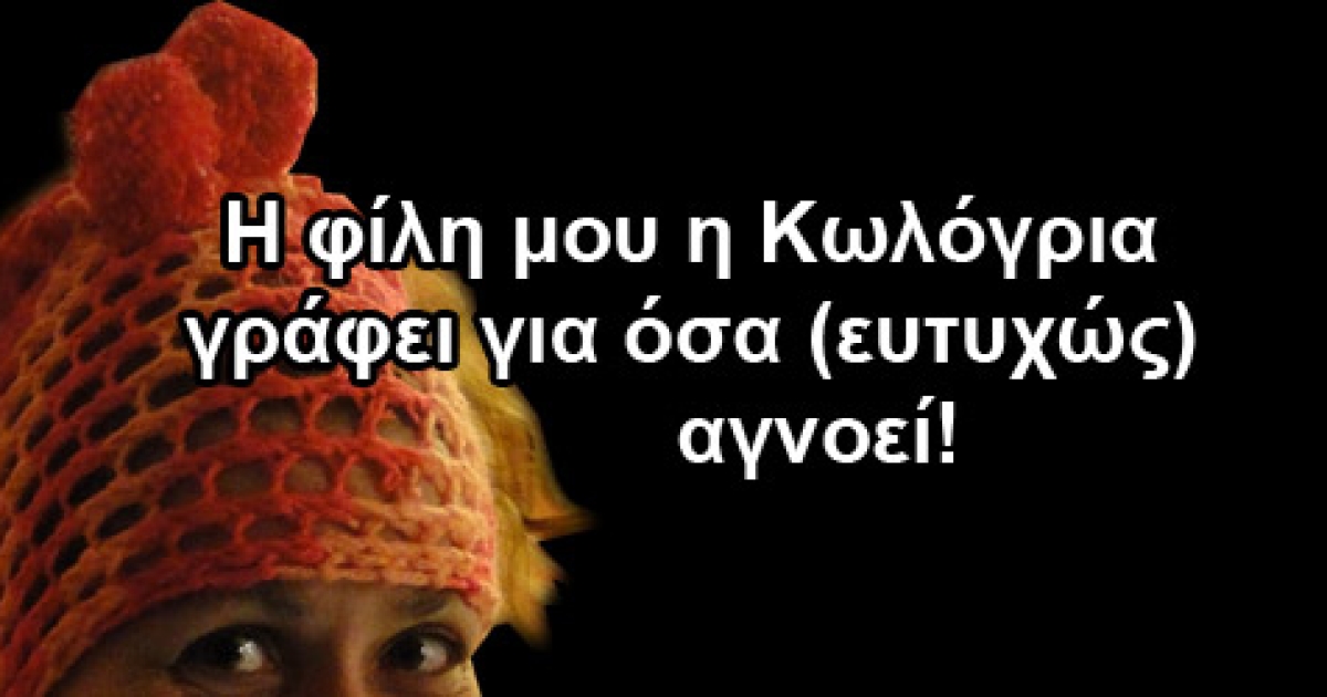 Έχω μια φίλη blogger. Τρομερό γράψιμο. Τρο-με-ρό! Τη θαυμάζω για τον τρόπο που απλώνει τη σκέψη της. Έχει πιστούς θυμαστές. Απίστευτα πιστούς… Είναι η Κωλόγρια http://kwlogria.blogspot.com/ Είναι εξαιρετική στο να περιγράφει το μικρό, το καθημερινό, αυτό που περνά από δίπλα και ενώ το ξέρεις δεν το ’χεις προσέξει. Και γράφει απίθανα μπινελίκια· αθυρόστομη του κερατά. Μόνο που στο γράψιμο (κι όχι μόνο) το πού βάζεις τις λέξεις παίζει καταλυτικό ρόλο. Και η φίλη μου η Κωλόγρια το ξέρει πολύ καλά. Η πλάκα είναι ότι στη ζωή της είναι χαριτωμένη, συνεσταλμένη, μικροσκοπική και πολύ διακριτική και ευγενική.