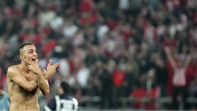 15/01/06 Ολυμπιακός 3-2 Ο πρώην «πράσινος» Μιχάλης Κωνσταντίνου πανηγυρίζει έξαλλα το γκολ που πέτυχε με τους «ερυθρόλευκους».
