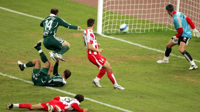 05/11/06 Παναθηναϊκός-Ολυμπιακός 1-0: Ο Θανάσης Κωστούλας στέλνει την μπάλα στα δίχτια της ομάδας του και χαρίζει τη νίκη στους γηπεδούχους.
