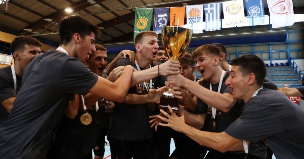 Οι νεαροί αθλητές του Προμηθέα παρέλαβαν το τρόπαιο, κράτησαν αναμνηστικές φωτογραφίες και πανηγύρισαν το επίτευγμα τους στο παρκέ του κλειστού γυμναστηρίου του Πανελληνίου.