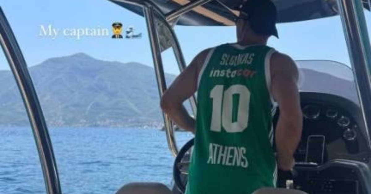 Ο πρώην γκαρντ του Παναθηναϊκού Νεμάνια Νέντοβιτς κάνει τις καλοκαιρινές διακοπές του με τη σύντροφο του και στη βαλίτσα του είχε μαζί του μια φανέλα του αρχηγού των «πρασίνων» Κώστα Σλούκα.