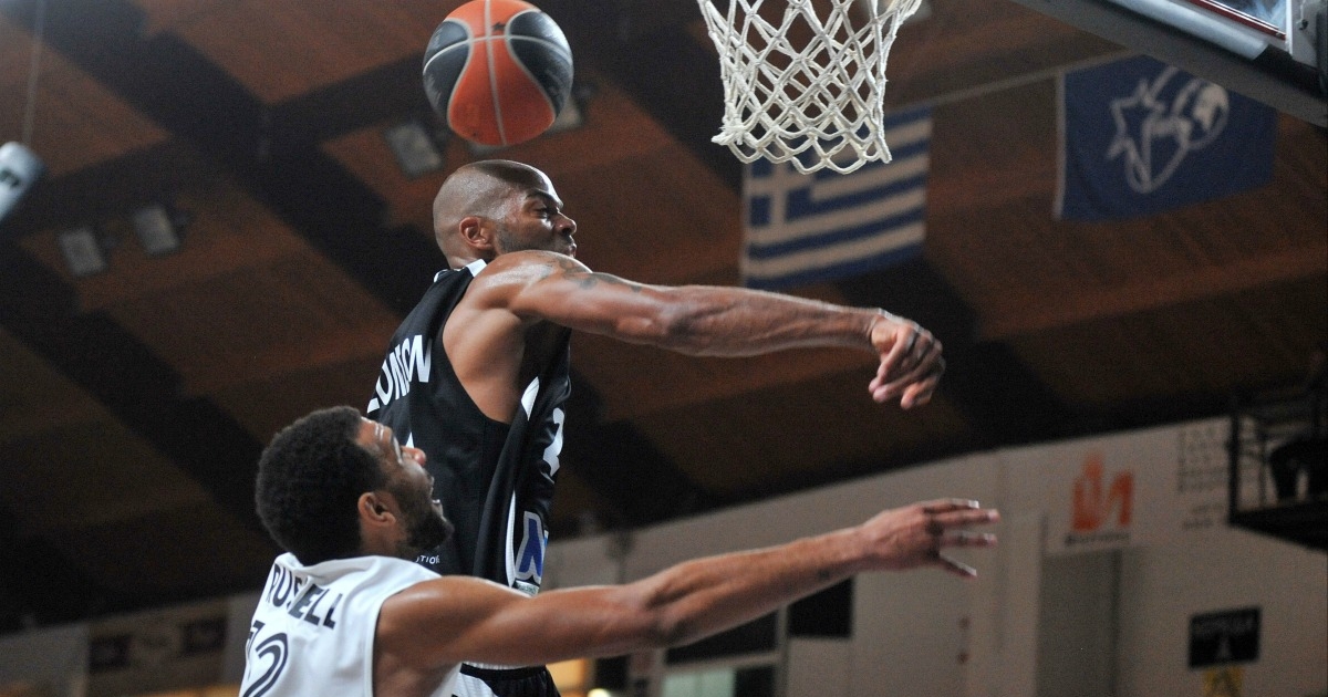 Η ΦΑΣΗ ΤΟΥ ΑΓΩΝΑ: Στην πρώτη περίοδο Καλινόσκι και Ντάμπινς έπαιξαν το pick 'n' roll το οποίο ολοκληρώθηκε με εντυπωσιακό κάρφωμα του Αμερικανού.