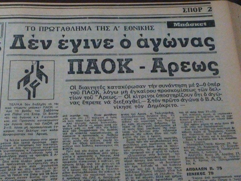 Το ημερολόγιο έδειχνε Σάββατο 8 Δεκεμβρίου του 1979, έξι μέρες νωρίτερα είχε κάνει το ντεμπούτο του (κόντρα στον Ηρακλή) ο Νίκος Γκάλης, αλλά ξαφνικά ο Αρης δέχθηκε την απροσδόκητη ψυχρολουσία! Λίγη ώρα πριν από το τζάμπολ στο Αλεξάνδρειο, οι Αρειανοί συνειδητοποίησαν σοκαρισμένοι ότι είχαν τους παίκτες, αλλά τους έλειπαν τα δελτία τους, που ήταν εκ των ων ουκ άνευ για τη διεξαγωγή του ματς!