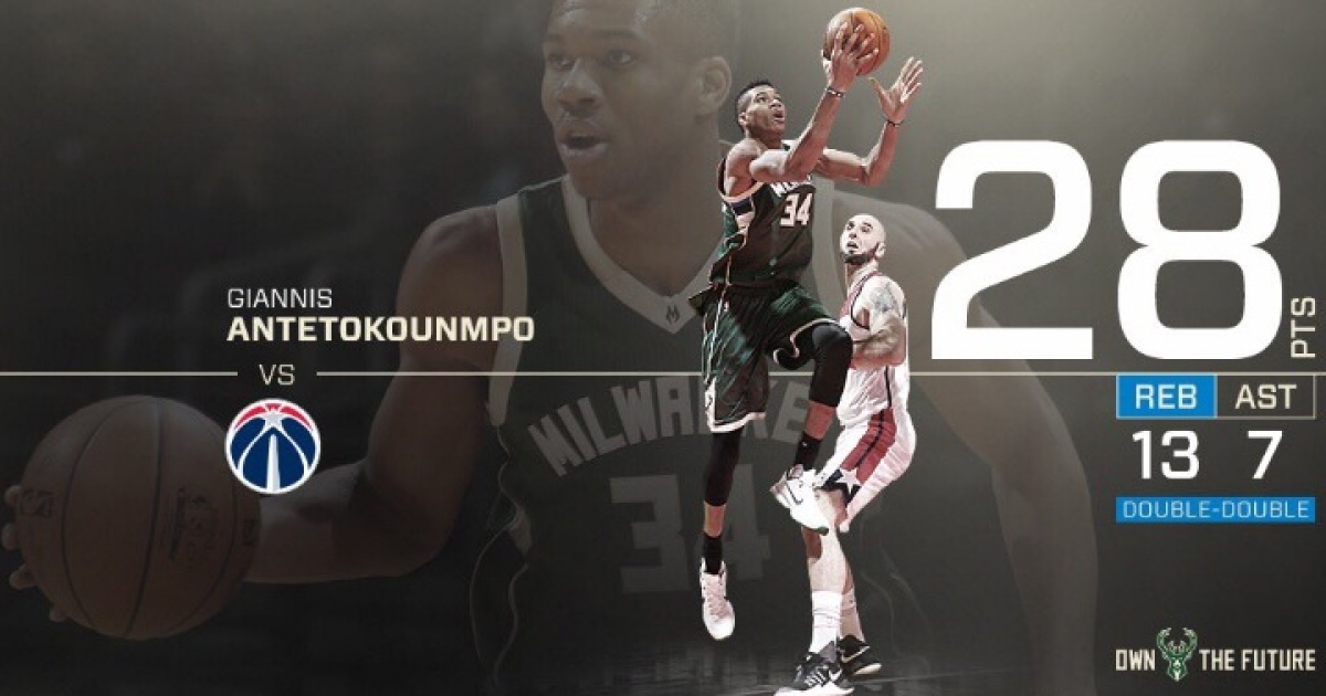 Μπορεί οι Μπακς να μην νίκησαν του Ουίζαρντς, ο Γιάννης Αντετοκούνμπο ξεχώρισε για ακόμη μια φορά όμως.