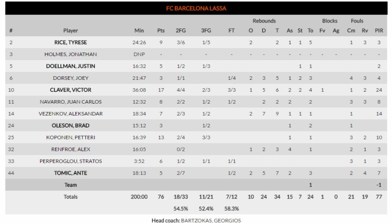 ΤΙ ΠΕΤΑΝΕ: Η ΤΣΣΚΑ το ποσοστό στα δίποντα (37.5% έναντι 54.5%) και τα ριμπάουντ (22-34). Η Μπαρτσελόνα την ήττα, τα λάθη (24-14) και τις βολές (7/12-23/29).