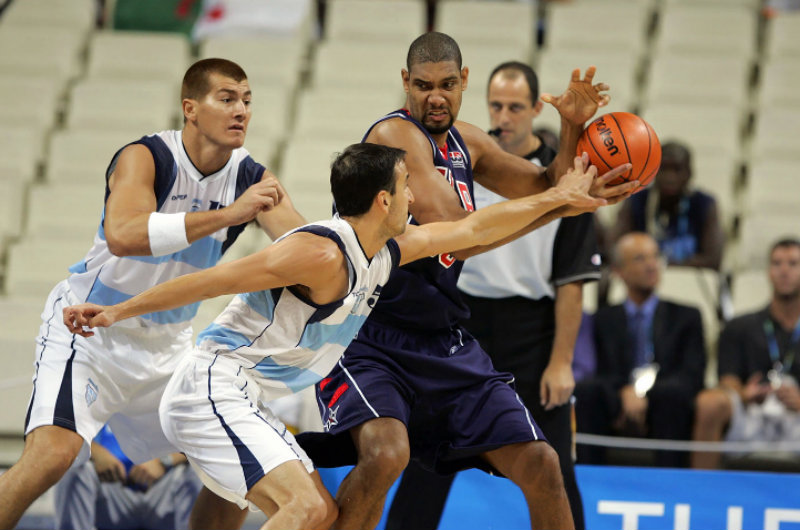 -Από αντίπαλοι, συμπαίκτες και low five με τον Αργεντινό γκαρντ στο Game 2 των τελικών κόντρα στους Πίστονς. Λεπτομέρεια: Ο Μανού είχα ακόμη μαλλιά... / 12 Ιουνίου, 2005