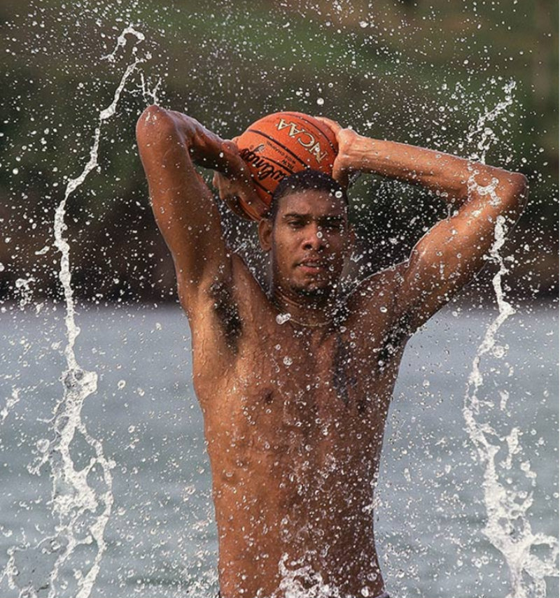 -Σε ένα από τα τελευταία του παιχνίδια στο Κολέγιο, ο μετέπειτα ηγέτης των Σπερς διεκδικεί το ριμπάουντ από τον Κέλι Τέιμς, στο παιχνίδι του Wake Forest με το Missouri / 9 Φεβρουαρίου, 1997