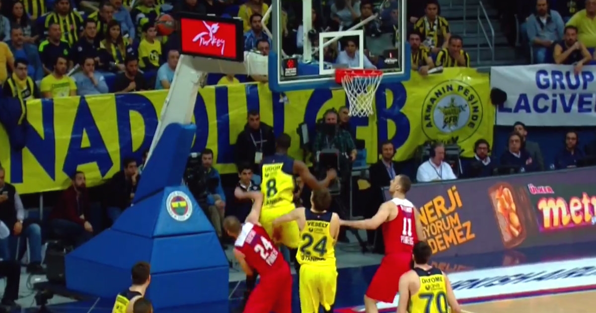 Ο σέντερ της Φενέρ έβαλε «στοπ» στον γκαρντ/φόργουορντ του Ολυμπιακού που πήγε να βάλει μπροστά στο σκορ τους «ερυθρόλευκους».