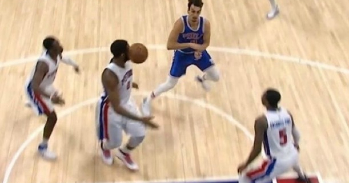 Ο Ντάριος Σάριτς προσπάθησε να πασάρει τη μπάλα στον αιφνιδιασμό των 76ers αλλά πέταξε τη μπάλα κατά λάθος στον Αντρέ Ντράμοντ!