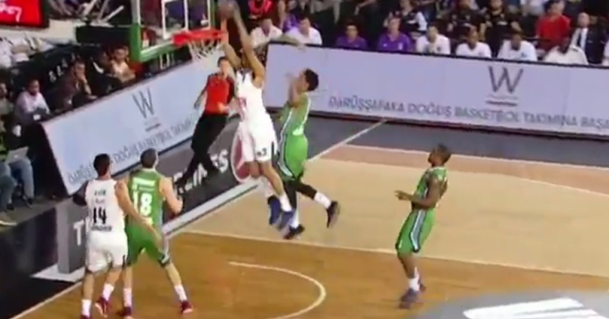 Ο Άντονι Ράντολφ πήρε την πάσα του Γκουστάβο Αγιόν κια κάρφωσε εντυπωσιακά στο καλάθι των Τούρκων.