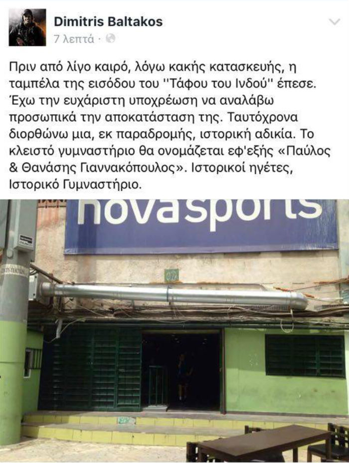 Όπως ενημέρωσε μέσω Facebook, ο πρόεδρος του Ερασιτέχνη, Δημήτρης Μπαλτάκος, λόγω κακής κατασκευής η ταμπέλα έπεσε, χωρίς να τραυματιστεί κάποιος και θα αναλάβει ο ίδιος την αποκατάστασή της.