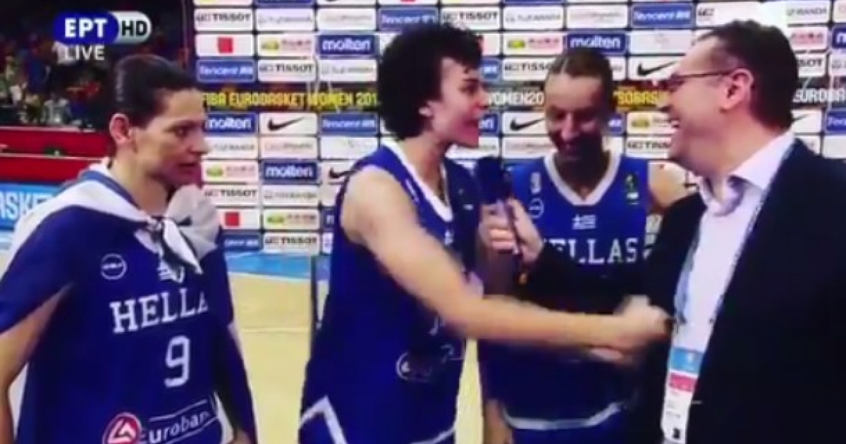Ο ρεπόρτερ της δημόσιας τηλεόρασης κατά τη διάρκεια των συνεντεύξεων μετά το ματς της Ελλάδας με τη Ρωσία, ρώτησε για το μπασκετικό ξύλο που παίχτηκε στο παρκέ.