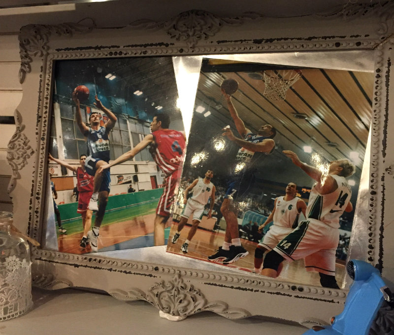 Πάντως, στο μαγαζί, υπάρχει και μια γωνίτσα αφιερωμένη στο μπάσκετ. Φέτος κυριαρχούν δυο φωτογραφίες. Στη μία ο Χρήστος, με την φανέλα του Ηρακλείου, κινείται ανάμεσα στον Σκλάβο και τον Θοδωρή Παπαλουκά (ήταν στην Αντίπαρο και φέτος) και στην άλλη, πάλι ως παίκτης του Ηρακλείου, να ελίσσεται ανάμεσα σε Μποντιρόγκα, Κοχ και Ράτζα. Όπως όμως διαβεβαίωσε: κάθε χρόνο, οι φωτογραφίες αυτές αλλάζουν.