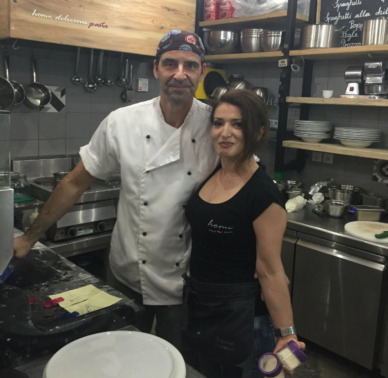 «Από μικρός ήθελα να γίνω μάγειρας. Δεν το έκανα από ανάγκη. Μου άρεσε όλο αυτό το παιχνίδι με τις γεύσεις. Κι επειδή από το μπάσκετ δεν μπορεί να πει κανείς ότι έλυσα το πρόβλημα της ζωής μου, αποφάσισα να επενδύσω στην εστίαση» εξομολογείται, σε μια από τις σπάνιες στιγμές που δεν τον πετυχαίνεις ή στην αγορά να ψάχνει για τα καλύτερα υλικά ή μέσα στην κουζίνα, μπροστά στον φούρνο, να παρασκευάζει με τα ίδια του τα χέρια ό,τι υπόσχεται το μενού του «Home» του ιταλικού εστιατορίου που διατηρεί στον κεντρικό πεζόδρομο του νησιού από το 2015.