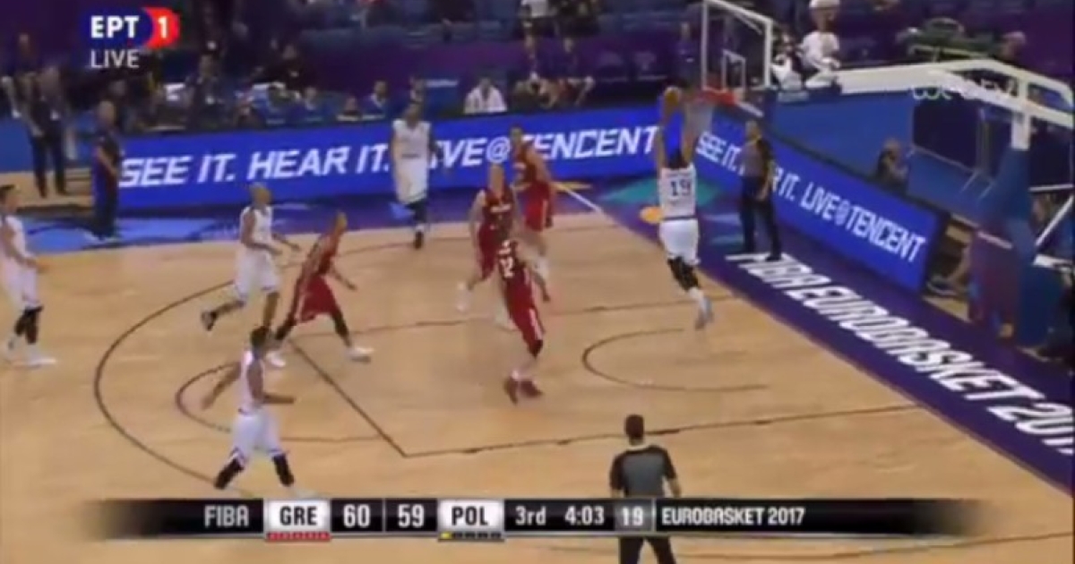 Η Ελλάδα έτρεξε στον αιφνιδιασμό με τον Καλάθη, ο οποίος ύψωσε την μπάλα για τον Παπαπέτρου και ο τελευταίος δεν είχε κανένα πρόβλημα να καρφώσει εντυπωσιακά. Ο Νικ πριν από τη συγκεκριμένη φάση είχε κάνει ένα αψεγάδιαστο coast to coast.