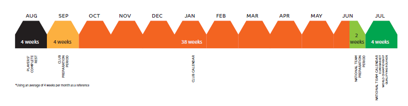 3.Το ημερολόγιο των εθνικών ομάδων πρέπει να είναι τέσσερις εβδομάδες ανά σεζόν, συν δύο εβδομάδες η περίοδος της προετοιμασίας.