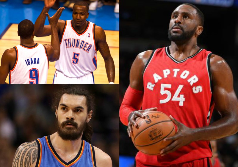 Μεγάλο ρόλο παίζουν και οι άνθρωποι που συμπληρώνουν την ηγετική τριάδα τότε και τώρα. Το 2012 το δίδυμο ψηλών ήταν οι Ιμπάκα και Πέρκινς, ενώ φέτος θα είναι οι Πάτερσον και Άνταμς. Ο Κονγκολέζος το 2012 ήταν σημαντικός για την ομάδα, καθώς η ικανότητα του στην άμυνα έβγαζε την ομάδα του από πολλές δυσάρεστες καταστάσεις. Τότε είχε 3.7 μπλοκ και 7.5 ριμπάουντ ανά αγώνα. Άρα η σύγκριση με τον Πάτερσον βγάζει νικητή τον νυν παίκτη του Τορόντο.