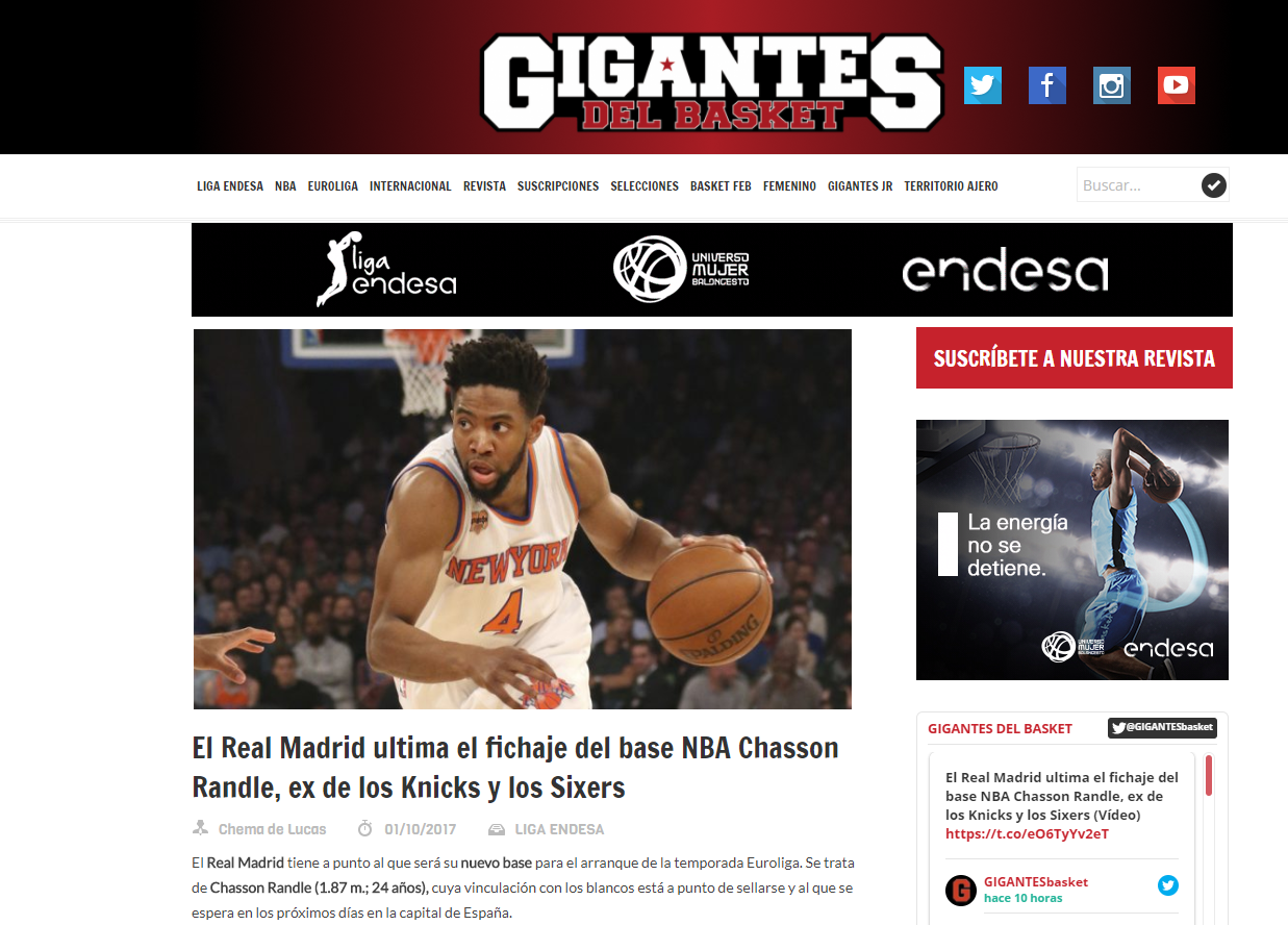 Για τη συμφωνία του Ραντλ με τη Ρεάλ Μαδρίτης έκανε λόγο το «Gigantes».