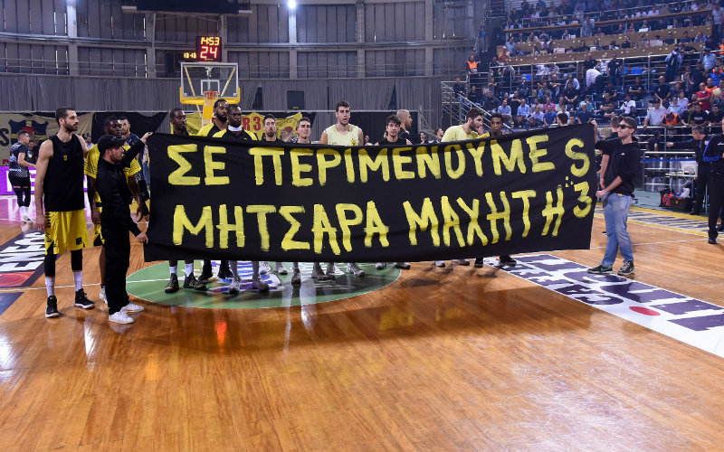Φθάσαμε περίπου 10 λεπτά πριν το τζάμπολ. Μερικοί οπαδοί του Άρη έχουν μπει στο παρκέ βαστώντας στα χέρια τους ένα πανό. Η συνεννόηση είχε γίνει νωρίτερα. Ένας φίλος της ομάδας αντιμετωπίζει σοβαρό πρόβλημα υγείας κι έπειτα από μεγάλο χρονικό διάστημα βγήκε από το κώμα. Ο στόχος ήταν προφανής. Να του ανεβάσουν την ψυχολογία, να φωτογραφηθεί με το σχετικό πανό όλη η ομάδα. Ο Παναγιώτης Γιαννάκης ήταν ενήμερος, επέστρεψε να γίνει αυτή η φωτογράφηση. Δεν θα μπορούσε εξάλλου να σταθεί εμπόδιο σ’ ένα μήνυμα που έχει τεράστια αξία. Βέβαια, μετά από περίπου ένα λεπτό ζήτησε απ’ όλους να επισπεύσουν τις διαδικασίες γιατί θα έπρεπε η ομάδα να ολοκληρώσει το πρόγραμμα προθέρμανσης. Στη συνέντευξη Τύπου αναφέρθηκε ειδικά στον συγκεκριμένο φίλο του Άρη, στη σημασία της ανθρώπινης ζωής, της μάχης που δίνει ο συγκεκριμένος φίλαθλος για να βγει νικητής από τον μεγαλύτερο αγώνα της ζωής του.