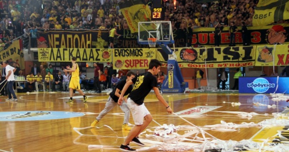 Όπως σε κάθε μεγάλη αναμέτρηση στο Αλεξάνδρειο οι φίλοι του Άρη προσπάθησαν να δώσουν το δικό τους τόνο και το τζάμπολ της 2ης αγωνιστικής της Α1 απέναντι στον συμπολίτη ΠΑΟΚ συνδυάστηκε με ρίψη ρολών χαρτιών ηλεκτρονικής μηχανής, αλλά δεν είχε το επιθυμητό αποτέλεσμα. Ένα πέτυχε στο κούτελο τον διαιτητή Παναγιώτη Αναστόπουλο, προκαλώντας του σκίσιμο, καρούμπαλο και ζαλάδα κι αμέσως αποχώρησε απ' το παρκέ συνοδεία των συναδέλφων του κ.κ. Καρακατσούνη & Παναγιώτου.