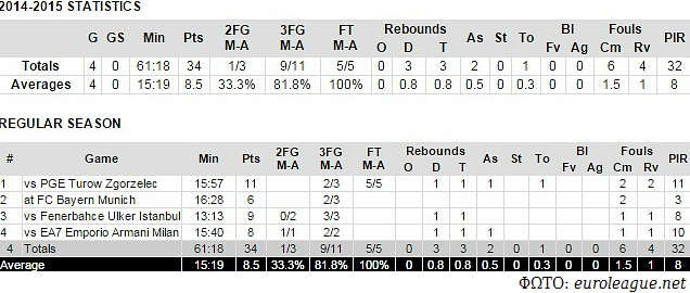 Αν η Α1 δεν αποτελεί το πλέον κατάλληλη κριτήριο, η Ευρωλίγκα φτάνει και περισσεύει. Εκεί όπου στη μόλις τρίτη χρονιά του στη διοργάνωση (Μπιλμπάο 2011-12 & Λιέτουβος Ρίτας 2012-13) ο αρχηγός του αντιπροσωπευτικού συγκροτήματος της χώρας του είναι πρώτος όλων σε ποσοστό ευστοχίας πίσω απ' τα 6,75μ. (81,8% με 9/11τρίπ.). Γι' αυτό ο προπονητής του τον παρακινεί να μη διστάζει να σουτάρει σε κάθε ευκαιρία.