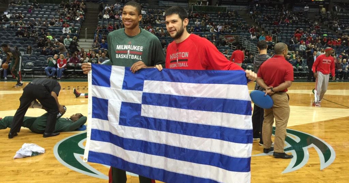 Ήμουν κι εγώ εκεί και στο λόγο της τιμής μου δεν θα ξεχάσω ποτέ αυτή τη στιγμή: τη στιγμή που –για να πω τη μαύρη αλήθεια-δεν έζησα, διότι λόγω της δεύτερης χαμένης πτήσης (από το Ντητρόιτ προς το Μιλγουόκι) δεν την πρόλαβα! Έφτασα τρέχοντας και όντας κάθιδρος στο γήπεδο κατόπιν εορτής, λίγα λεπτά πριν από το τζάμπολ και είδα τον Κώστα και τον Γιάννη να κρατούν μαζί την ελληνική σημαία (την οποία προνόησε να κουβαλήσει ο Καλκαβούρας, όπως πέρυσι την είχε πάρει μαζί του στο ίδιο γήπεδο ο Νίκος Παπαϊωάννου) μονάχα από τη φωτογραφία που είχαν την ευγενή και άκρως κολακευτική για τον απανταχού της γης ελληνισμό, καλοσύνη να δημοσιεύσουν οι Μπακς στο tweeter τους!