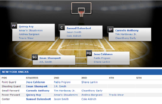 Ο Καρμέλο Άντονι προσπαθεί και αυτό είναι κάτι που κάνει από την πρώτη στιγμή που φόρεσε τη φανέλα των Νικς, παρά την άσχημη πορεία της ομάδας του. Ωστόσο, ο Αμάρε Στάντεμαϊρ παραμένει μακριά από τον καλό του εαυτό, ο Αντρέα Μπαρνιάνι έχει ξεχάσει την τελευταία φορά που πάτησε παρκέ και σε γενικές γραμμές το ρόστερ των Νικς παρουσιάζει μεγάλες αδυναμίες.