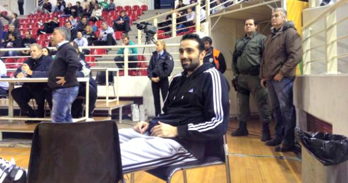 Ο Κώστας Χαραλαμπίδης δεν θα μπορούσε να χάσει το παιχνίδι της ομάδας του με την Βέντσπιλς και βρέθηκε στο κλειστό της Πυλαίας με πατερίτσες!