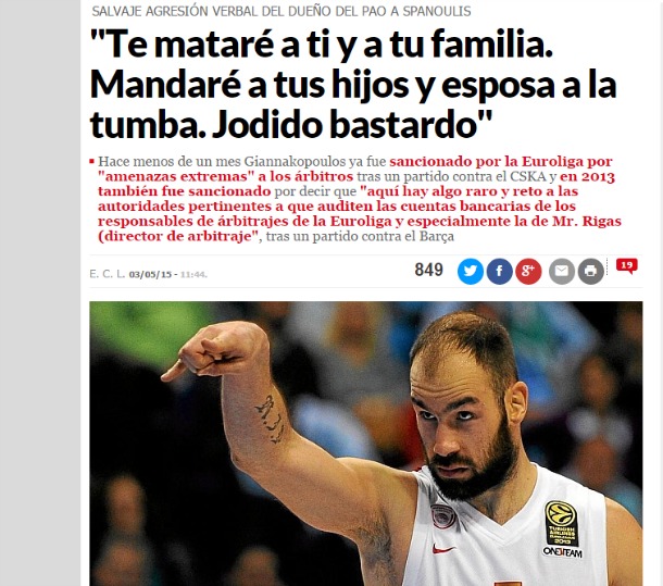 Από τη διακοπή μετά τον πανηγυρισμό του Βασίλη Σπανούλη, τις δηλώσεις του Δημήτρη Γιαννακόπουλου στην κάμερα της Nova... μέχρι και τα όσα υποστηρίζει ο Ολυμπιακός για φραστική επίθεση του πρώην ιδιοκτήτη και μεγαλομετόχου του Παναθηναϊκού στον αρχηγό των «ερυθρόλευκων» φιλοξενούν τα ξένα Μέσα.