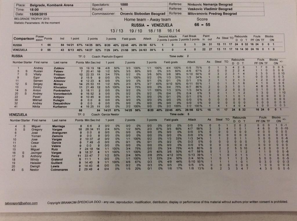 Η Ρωσία χρειάστηκε να... τρέξει μόνο στο δεύτερο δεκάλεπτο για να φτάσει στη φιλική επικράτηση επί της Βενεζουέλας (13-13, 32-23, 50-41, 66-55) στην Kombank Arena του Βελιγραδίου.