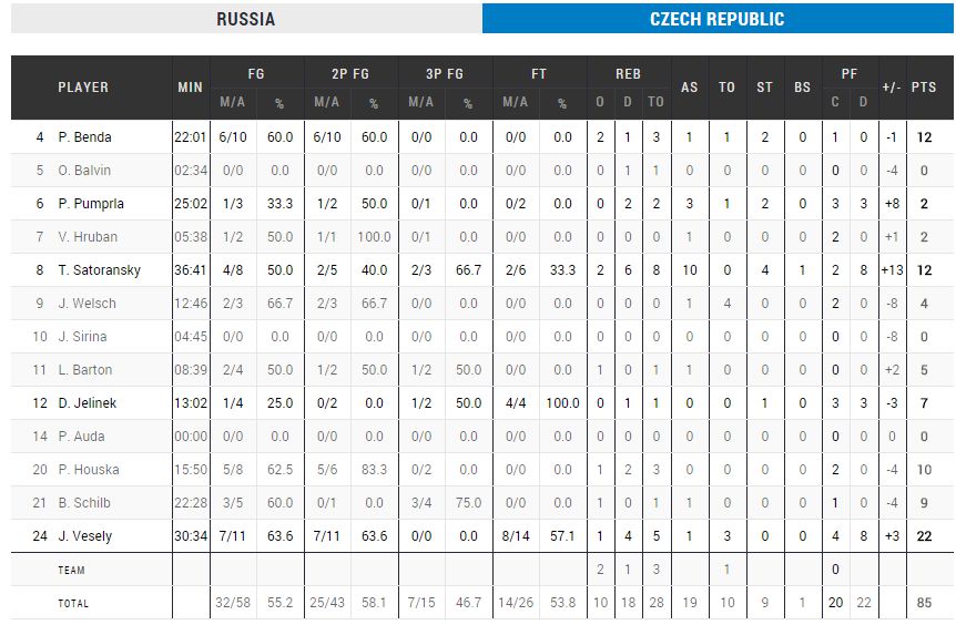Στην τελευταία περίοδο, ο Κώστας Κουφός συνέχισε να μετατρέπει σε καλάθι όλες τις δημιουργίες των περιφερειακών του. Στον ίδιο ρυθμό συνέχιζε και η πίεση και ο συνδυασμός των παραπάνω στοιχείων ανέβασε τη διαφορά στους 20 πόντους. Στο τελευταίο πεντάλεπτο χαλάρωσαν οι διεθνείς μας και η Τσεχία μείωσε για το τελικό 70-56.