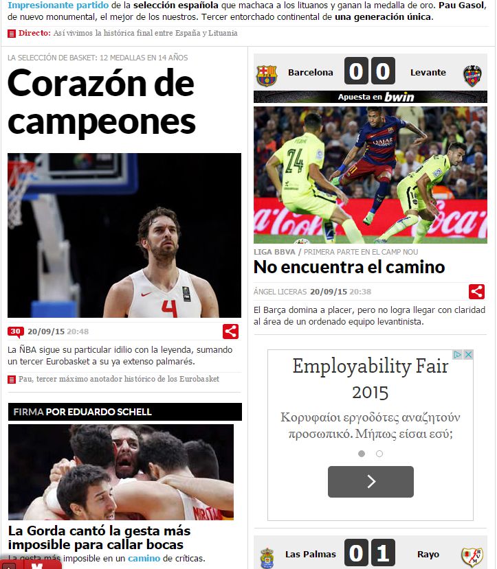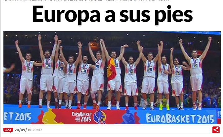 Σύσσωμος ο ισπανικός Τύπος αποθεώνει την πρωταθλήτρια Ευρώπης. Βαθιά υπόκλιση για τον Πάου Γκασόλ και τους συμπαίκτες του .