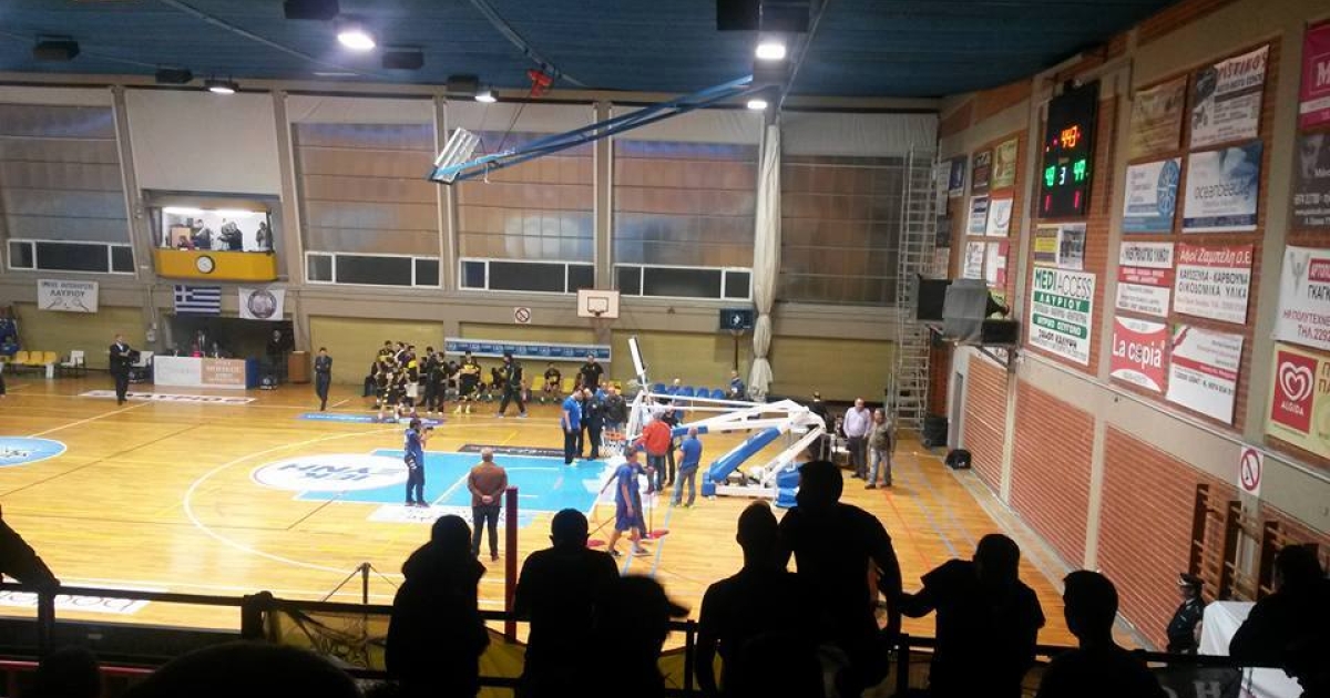 Ο φόργουορντ του Λαυρίου επιχείρησε ένα βροντερό κάρφωμα ωστόσο έβαλε λίγη δύναμη παραπάνω και έτσι το ταμπλό της μπασκέτας έγινε θρύψαλα, 4'44" πριν το τέλος.