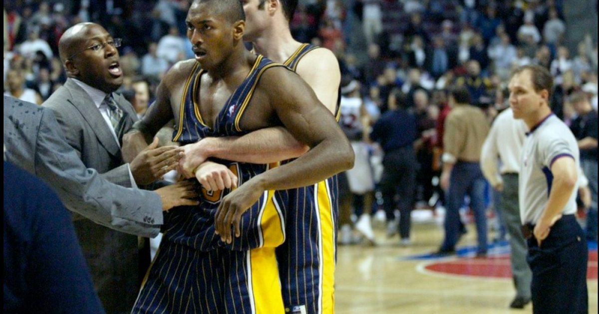 Όλα ξεκίνησαν από μια διαφωνία του «κακού παιδιού» του ΝΒΑ, Ρον Αρτέστ με το... τέρας Μπεν Γουόλας και εξελίχθηκαν ραγδαία με τους παίκτες να σκαρφαλώνουν στις κερκίδες και να ξυλοφορτώνουν ακόμη και τους οπαδούς.